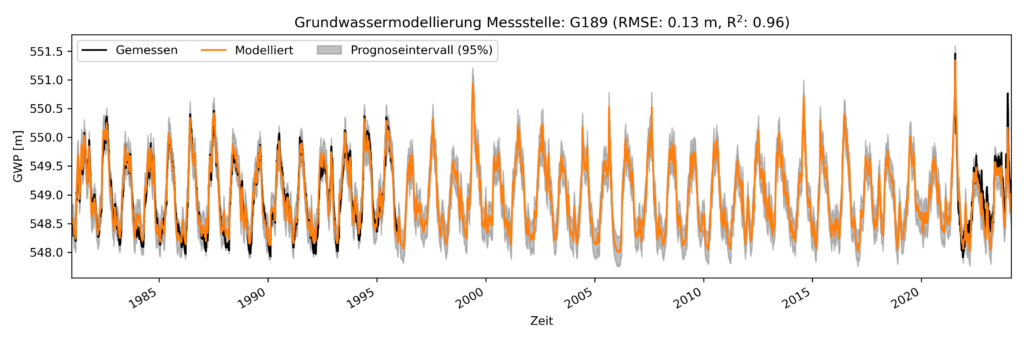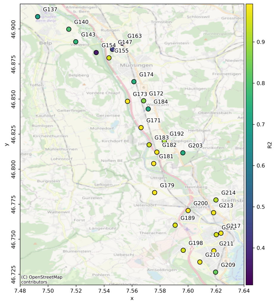 The models performed very well across the study area (Figure 2). Notably, fluctuations in the Aare River’s water levels were found to explain much of the variability in groundwater levels. This insight enabled accurate reconstruction of groundwater levels during periods without measurements.